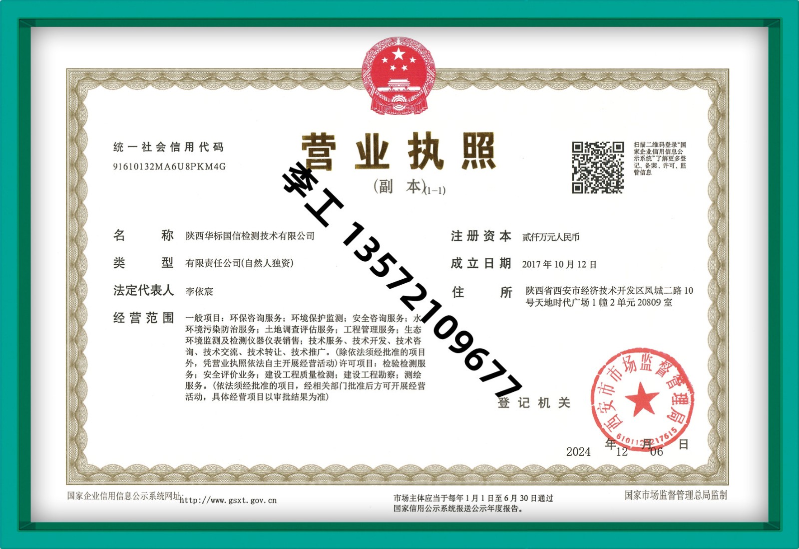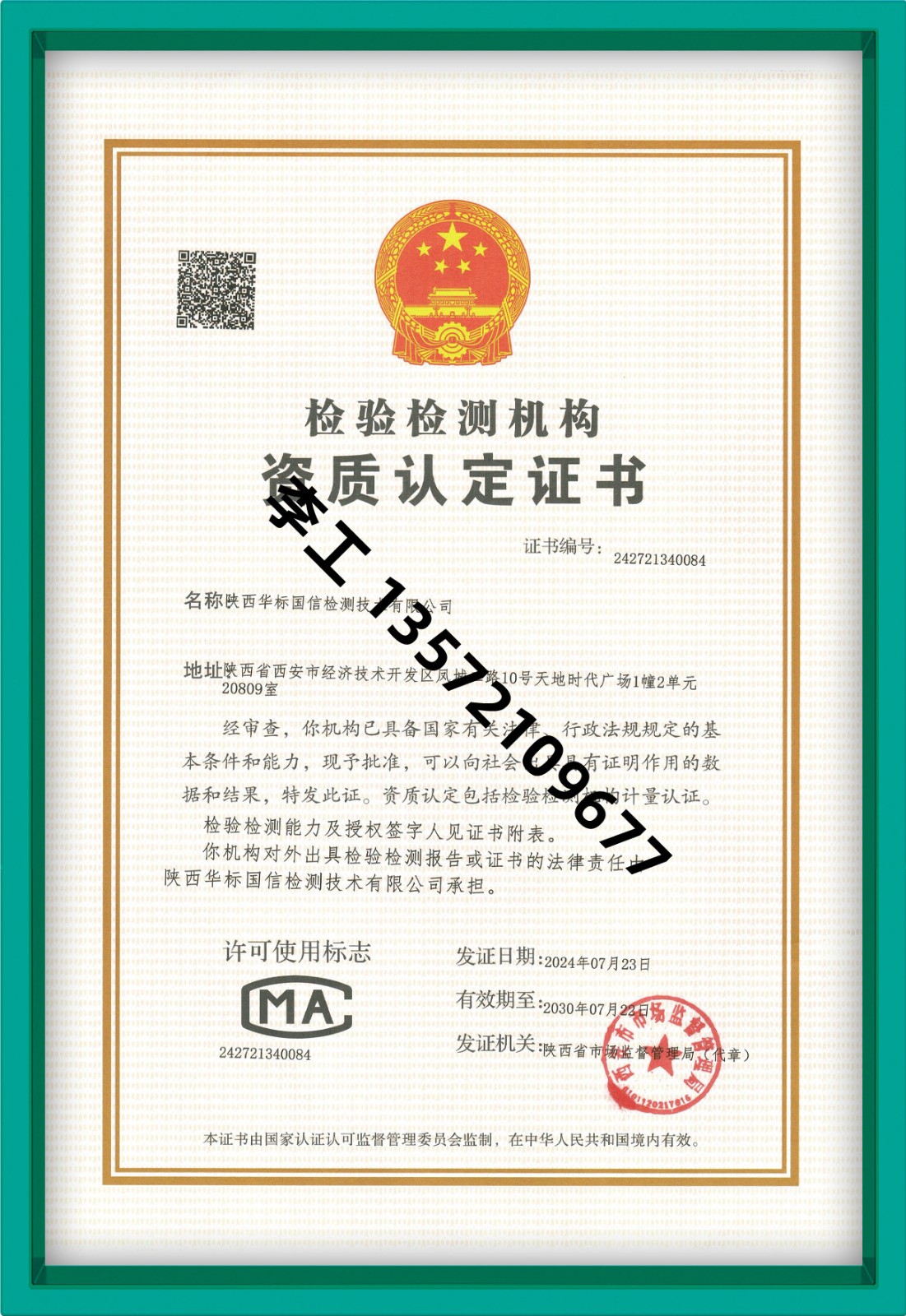 陕西华标国信检测 李工