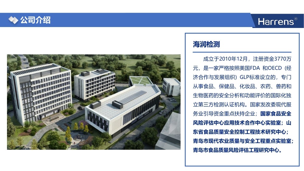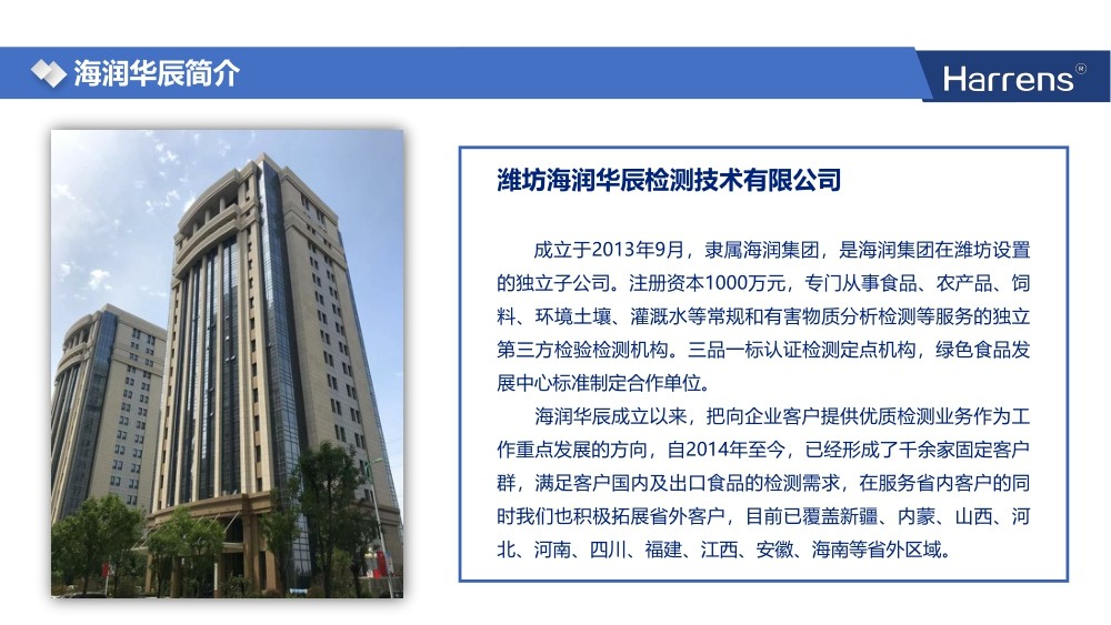 成立于2013年9月,隶属海润集团,是海润集团在潍坊设置的独立子公司。注册资本1000万元,专门从事食品、农产品、饲料、环境土壤、灌溉水等常规和有害物质分析检测等服务的独立第三方检验检测机构。三品一标认证检测定点机构,绿色食品发展中心标准制定合作单位。